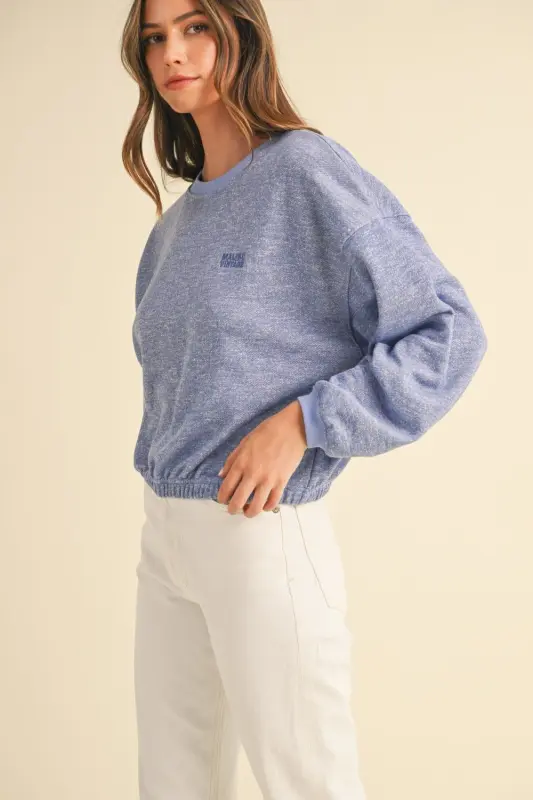 This stylish crop sweatshirt features a round neck, long sleeves, and "MALIBU VINTAGE" embroidery on the front. The pullover style makes it easy to wear and style for a casual yet fashionable look. Perfect for layering or wearing on its own, it's a versatile piece to add to your wardrobe for a touch of street style and comfort.